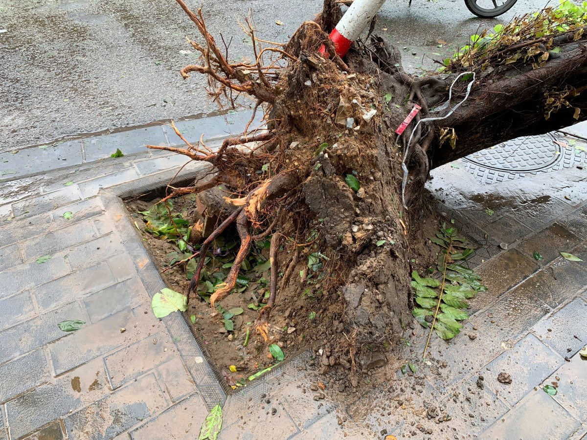 Điều đáng nói, sau khi bão qua đi, hình ảnh những cây xanh bị đổ ngã, để lộ những gốc cây còn nguyên phần bọc bầu, thậm chí một số cây còn không có bầu đất và rất ít rễ.