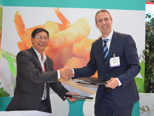 Ông Trương Đình Hòe - đại diện VASEP- ký thỏa thuận hợp tác với ông Hugo Verhoeven - Giám đốc điều hành dự án hỗ trợ phát triển xuất khẩu thủy sản các nước Châu Á - CBI