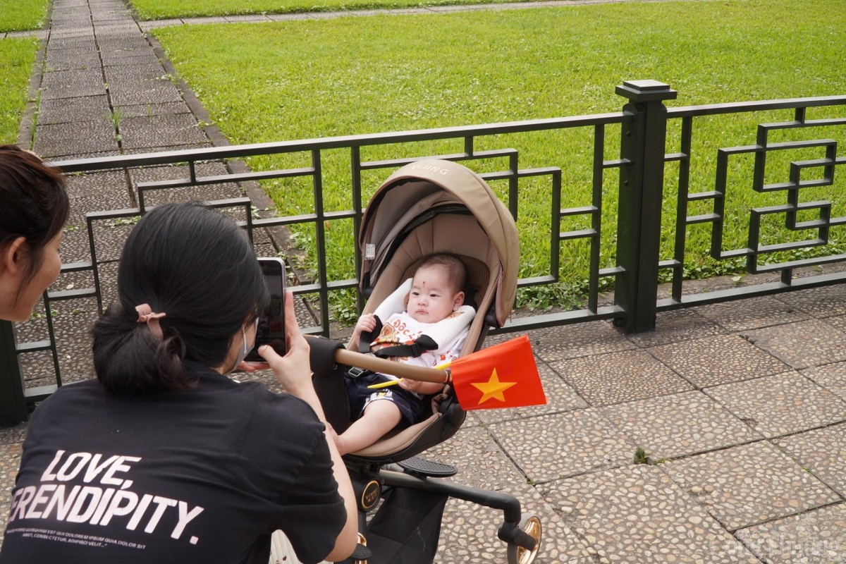 | Nhiều em bé cũng được gia đình chụp ảnh lưu giữ kỷ niệm theo phong cách “ông bà anh”, cho con cháu mặc quân phục nhỏ, thể hiện giáo dục lòng yêu nước từ sớm. |