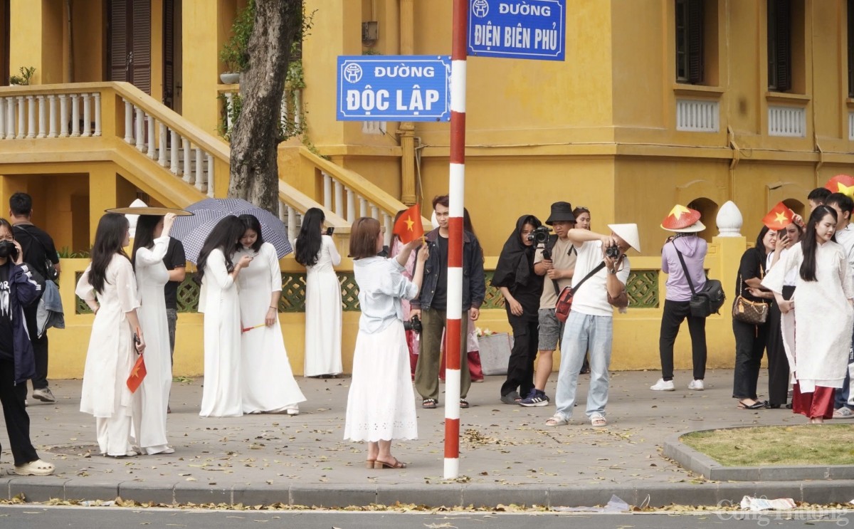 | Những ngày này, tại các địa điểm mang đậm dấu ấn lịch sử của Thủ đô Hà Nội như Quảng trường Ba Đình, phố Độc Lập, đường Điện Biên Phủ..., không khí mừng đại lễ rộn ràng trong từng khung hình. |