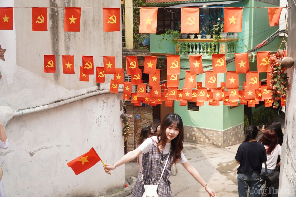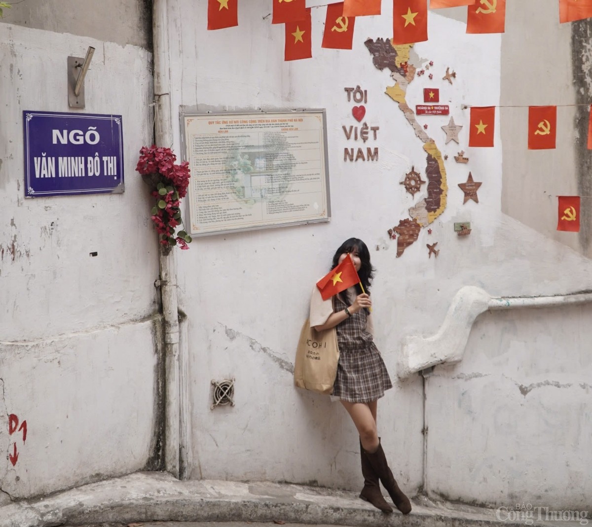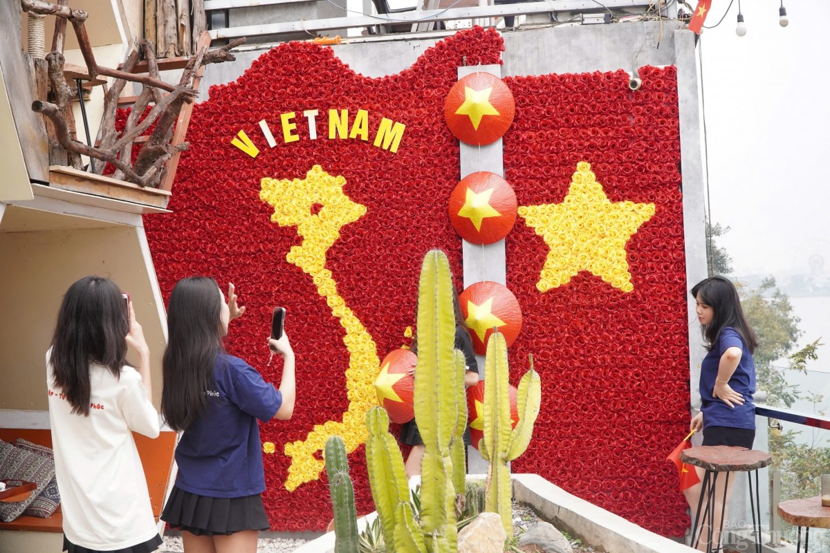 | Nhiều địa điểm tại Hà Nội đã trở thành điểm đến yêu thích của giới trẻ để chụp ảnh cùng cờ Tổ quốc, như các quán cà phê có trang trí theo concept (phong cách trang trí) với những lá quốc kỳ, hay các khu vực phố cổ như Hàng Ngang, Hàng Đào, Hàng Cân... |