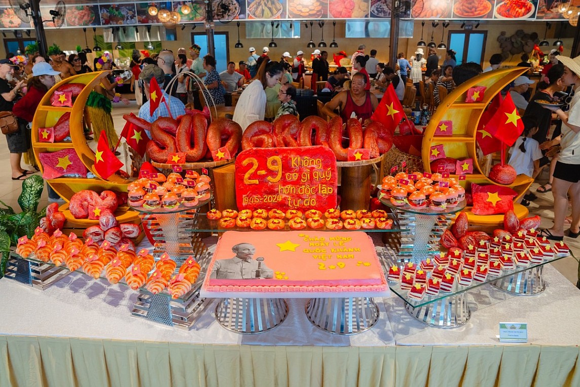 Đặc biệt, nếu ghé về Thị trấn Hoàng Hôn và đảo Hòn Thơm (Phú Quốc) được trang hoàng với hàng nghìn lá cờ Tổ quốc. Nhiều hàng quán thay đổi đồng đồng phục thường ngày của nhân viên cũng thay bằng sắc đỏ sao vàng, tạo nên một không gian khiến người dân, du khách cảm thấy càng tôn thêm tinh thần dân tộc.