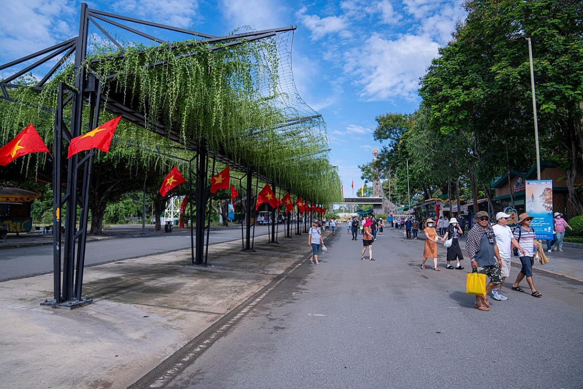 Nhiều khu vui chơi tại Tây Ninh "thay áo mới", làm cho người dân, du khách mê đắm với đa dạng tiểu cảnh, vườn hoa bừng sắc thắm, cùng những lá cờ Tổ quốc khổng lồ.