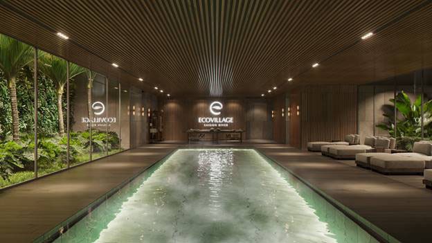 Để xứng tầm vóc là tổ hợp resort nghỉ dưỡng 6 sao, nhà sáng lập Ecopark đã đầu tư hàng chục nghìn tỷ đồng để biến 5.500m2 đất thành tổ hợp trị liệu onsen clubhouse mang tên Ecovillage Saigon River lớn nhất phía đông Sài Gòn, cung cấp toàn diện các dịch vụ chăm sóc sức khỏe với: 8 hồ khoáng nóng, 2 hồ khoáng lạnh, khu xông hơi chủ đề (xông hơi đá muối, xông hơi nóng, xông hơi lạnh), khu spa trị liệu, vườn thiền ion âm, vườn mát-xa, nhà hàng thực dưỡng,…