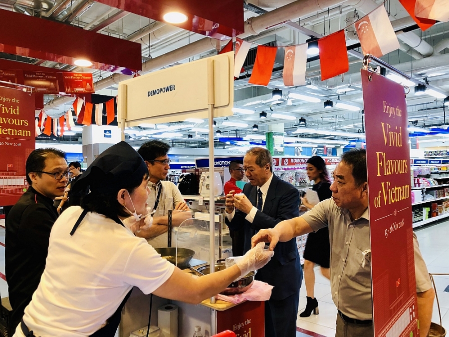 | Người Singapore rất ưa chuộng các mặt hàng có thế mạnh xuất khẩu của Việt Nam như gạo, tôm, cá, trái cây... |