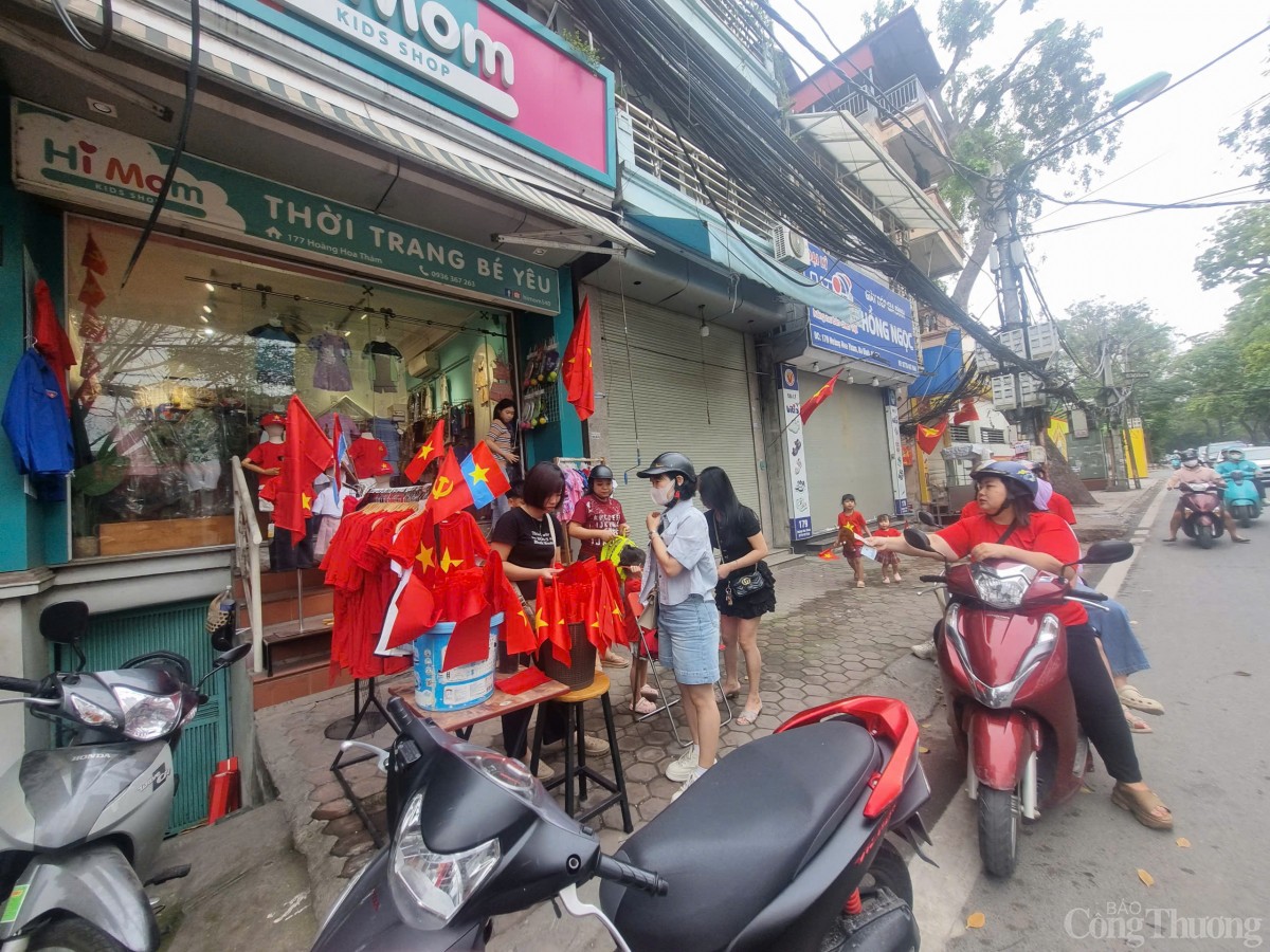 Không khí lễ hội không ồn ã mà thấm đẫm sự trang trọng và hào hùng. Các cửa hàng bán cờ, áo đỏ, băng rôn rộn ràng khách mua, như tiếp thêm nhịp thở cho phố phường. Quán cà phê treo cờ, các mái hiên rợp sắc đỏ, từng chi tiết nhỏ cũng trở thành một phần ký ức.