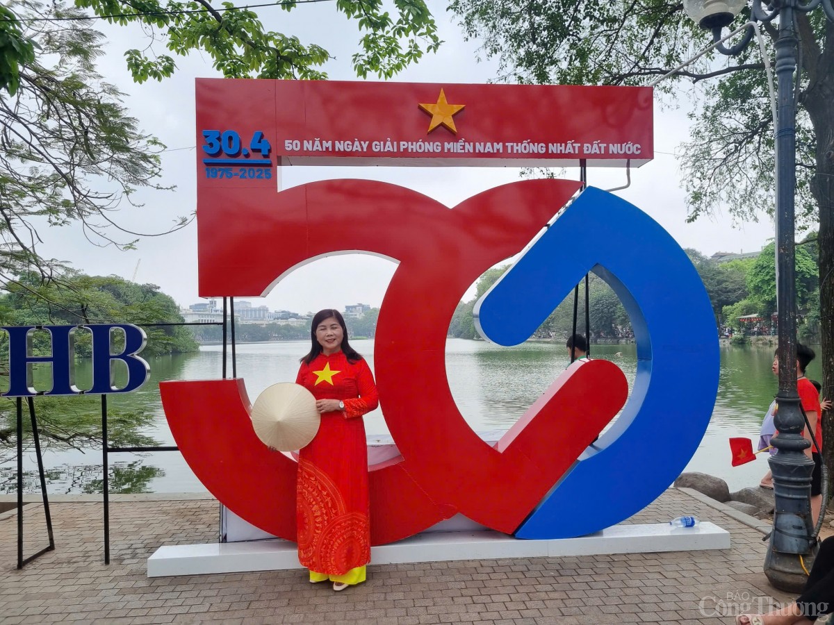 | Các tiểu cảnh trang trí mừng 50 năm Ngày Giải phóng miền Nam, thống nhất đất nước trở thành điểm nhấn thu hút, tạo nên những khoảnh khắc rộn ràng và đầy màu sắc giữa lòng Thủ đô. |