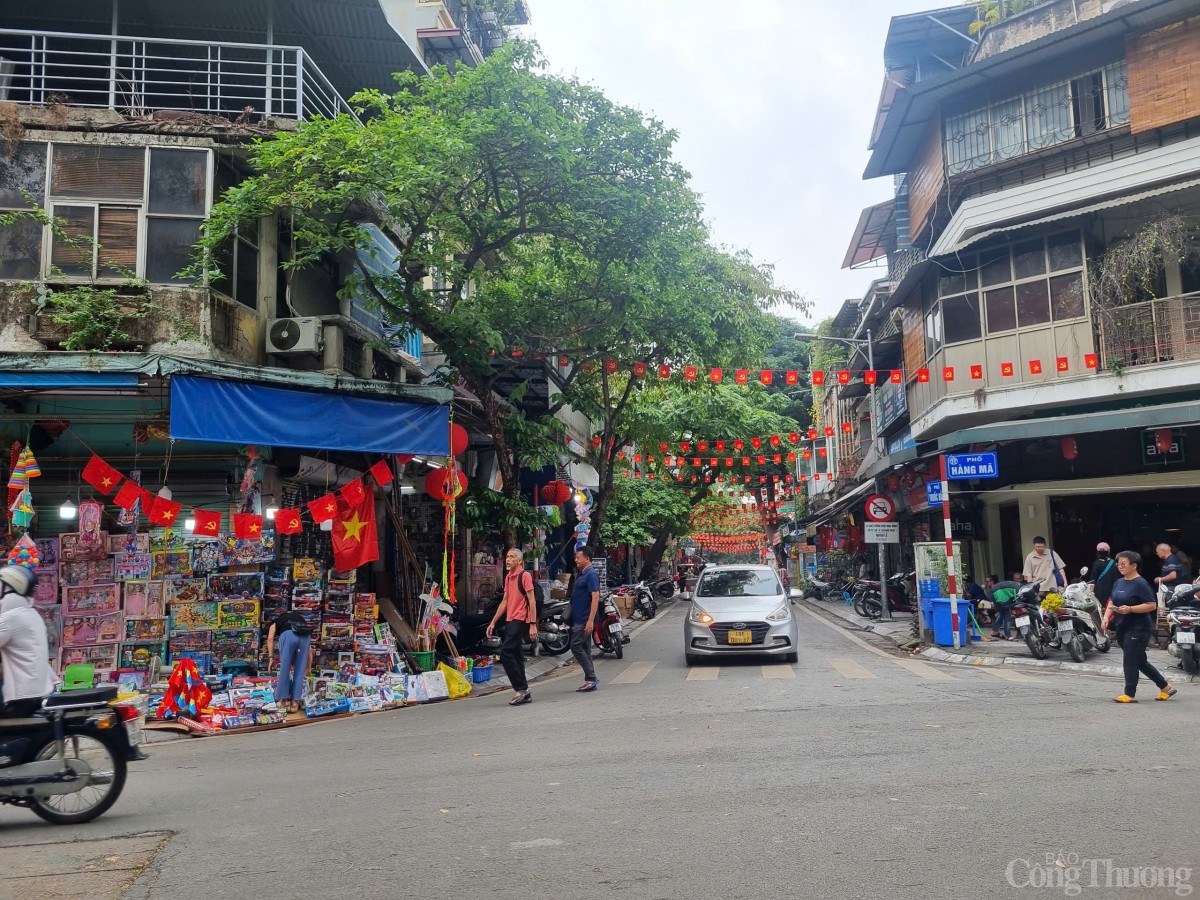 | Trên các con đường quen thuộc, dải cờ đỏ sao vàng và cờ Đảng được treo đều tay, tạo nên khung cảnh trang trọng, uy nghi giữa lòng khu phố cổ vốn tấp nập. |