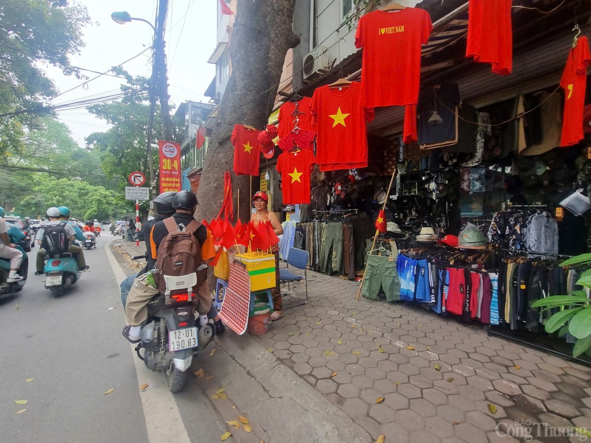 | Trên nhiều tuyến phố Thủ đô sáng 30/4, các cửa hàng bày bán áo cờ đỏ sao vàng, cờ Tổ quốc, cờ Đảng trở nên nhộn nhịp... |