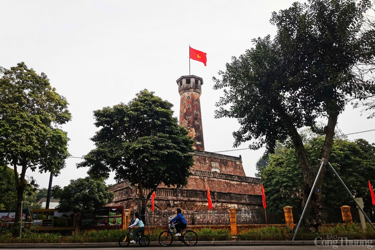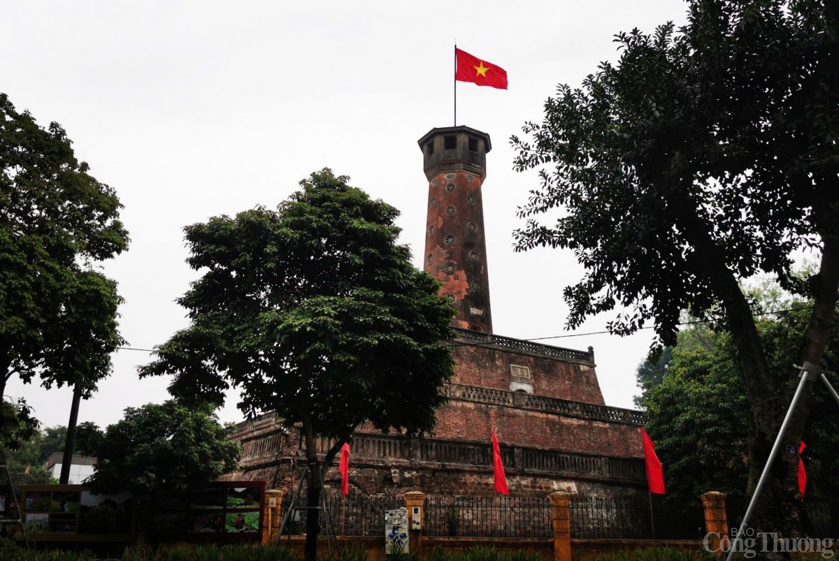 | Cờ đỏ sao vàng bay phấp phới tại cột cờ Hà Nội trong sáng của ngày đầu năm mới Ất Tỵ 2025. |