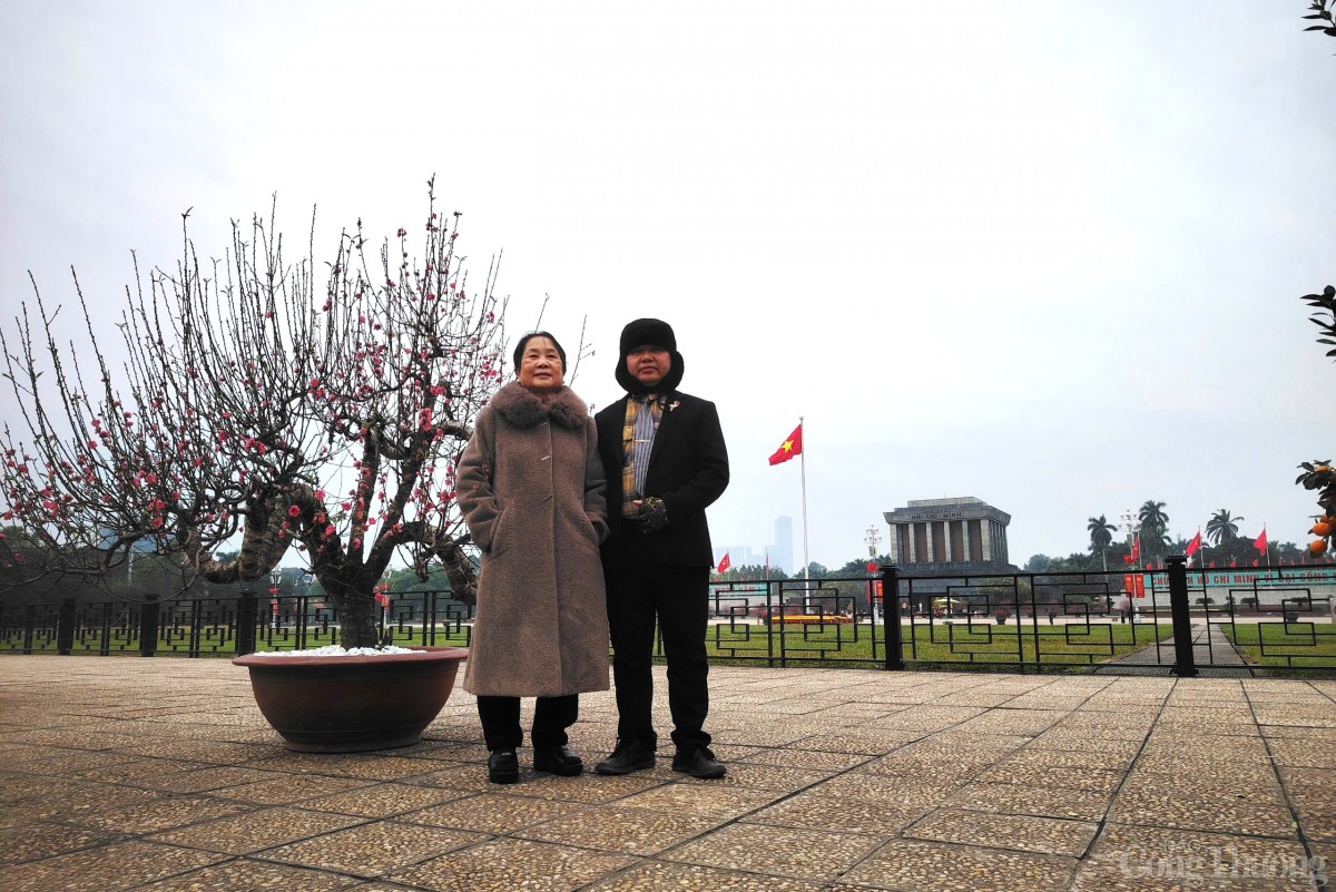 Anh Nguyễn Hoành Phi ở quận Hoàng Mai cho biết, Tết ý nghĩa nhất là được ở bên mẹ. Anh tranh thủ buổi sáng để đưa mẹ là bà Trần Thị Đồng đến Lăng Bác Hồ chụp những bức ảnh để lưu giữ khoảnh khắc bên cạnh Lăng của vị lãnh tụ vĩ đại của dân tộc Việt Nam.