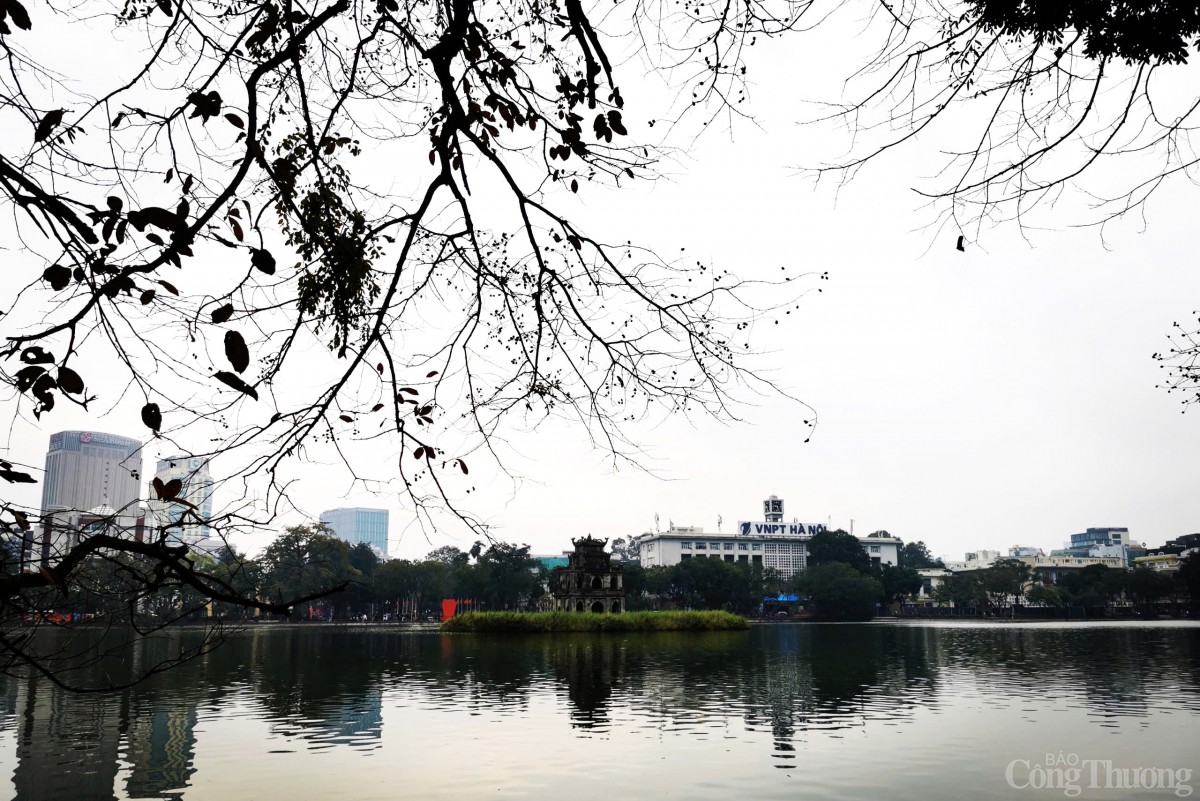 Tiết trời Hà Nội ngày đầu năm khiến khung cảnh tại hồ Hoàn Kiếm trở nên thơ mộng hơn. |
