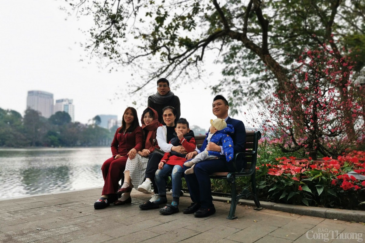 | Người dân tại Hà Nội du Xuân dưới thời tiết lạnh giá. Nhiều gia đình đến hồ Hoàn Kiếm tranh thủ chụp những bức ảnh lưu giữ khoảnh khắc du Xuân của ngày đầu năm mới Ất Tỵ. |