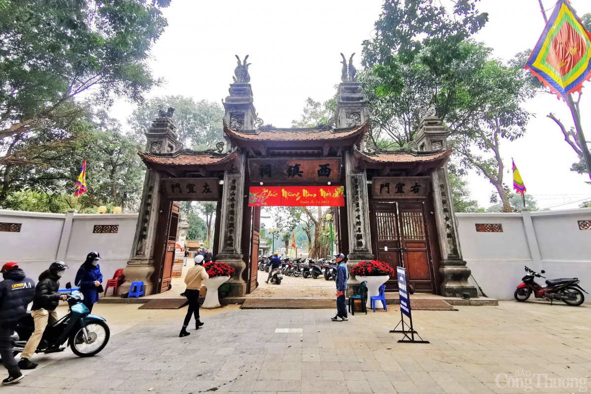 | Nhiều người dân đi lễ tại đền Voi Phục ở đường Kim Mã vào sáng mùng 1. |