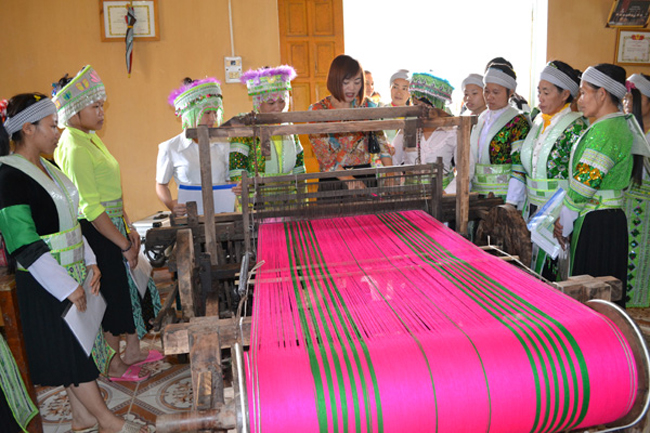 Dạy nghề dệt thổ cẩm cho đồng bào Mông ở huyện Hàm Yên, Tuyên Quang