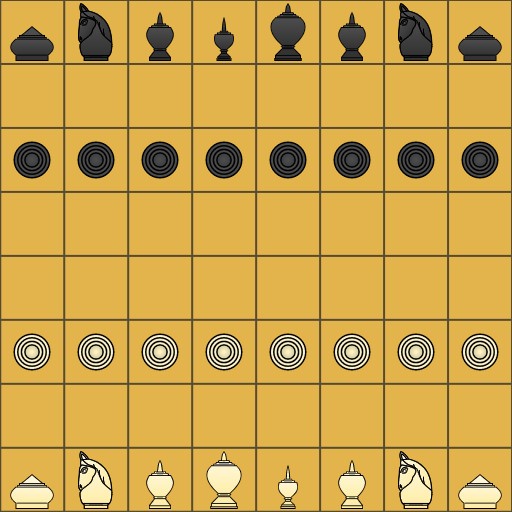 Cụ thể, quân vua đi như vua trong Cờ vua, nhưng nước đầu được đi như mã. Hậu vẫn có thể đi thẳng và chéo như quân hậu Cờ vua, tuy nhiên chỉ được di chuyển một ô cờ. Tượng cũng chỉ được đi chéo một ô. Trong khi đó các quân tốt, mã và xe vẫn đi giống cờ vua. Riêng tốt sẽ được phong khi tiến lên hàng số 6.