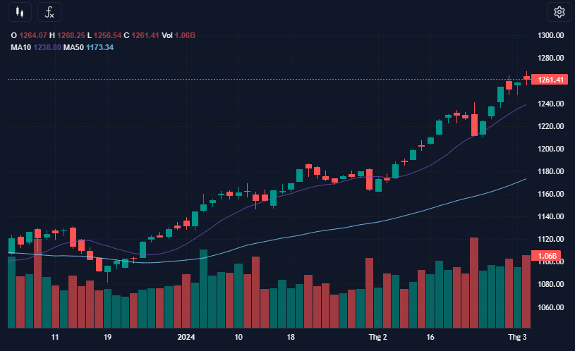 | VN-Index vượt mốc đỉnh của năm 2023, VCB tăng kịch trầnThị trường lấy lại sắc xanh, VN-Index bật tăng 5,55 điểm |