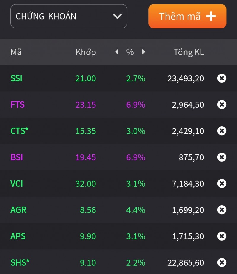 Nhóm cổ phiếu chứng khoán tăng mạnh |
