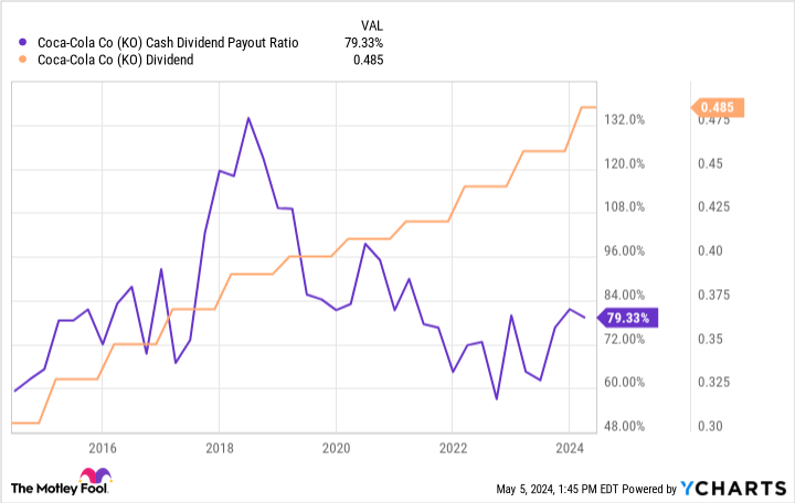 | Tỷ lệ thanh toán cổ tức bằng tiền mặt của Coca-Cola (Nguồn: YCharts) |