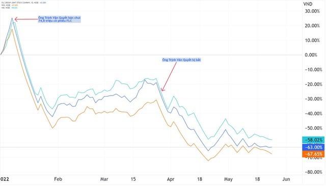 Thực tế cho thấy, từ đầu năm đến nay, giá các cổ phiếu thuộc "họ" FLC đã giảm mạnh. Cụ thể, FLC giảm 64%, ROS giảm 68% và HAI giảm 59%. Các cổ phiếu này giảm trong bối cảnh ông Trịnh Văn Quyết, cựu Chủ tịch FLC bị tạm giam do có dấu hiệu thao túng thị trường chứng khoán. Hồi đầu năm, ông Quyết đã bán chui 74,8 triệu cổ phiếu FLC nhưng không công bố thông tin. Giao dịch này sau đó đã bị cơ quan chức năng hủy bỏ.