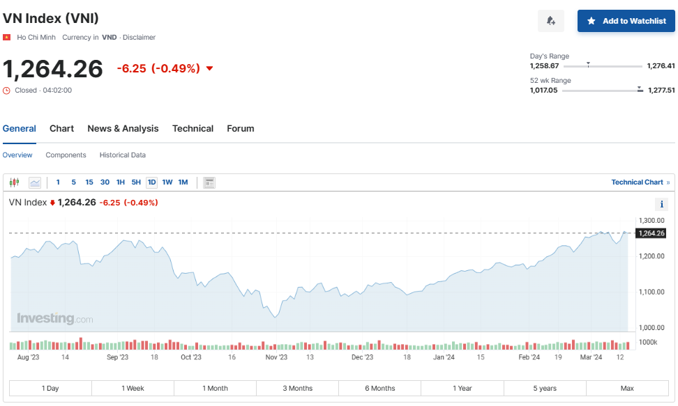 Kết phiên giao dịch ngày 14/3, chỉ số VN-Index giảm 6,25 điểm, tương đương 0,49%, xuống 1.264,26 điểm. Niềm vui dành cho các nhà đầu tư cầm cổ phiếu vốn hóa nhỏ và đặc biệt là cổ phiếu ngành dầu khí.