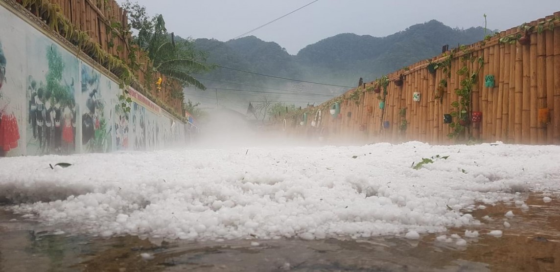 | Mưa đá tại Trường mầm non Hang Kia - Huyện Mai Châu, tỉnh Hòa Bình (Ảnh: Trung tâm KTTV) |