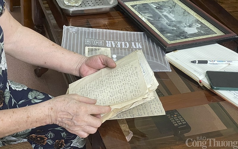 | Những bức thư của chồng gửi về được bà Lương cất giữ cẩn thận. |