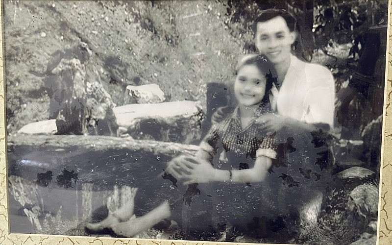 | Thời gian bà sống bên chồng chỉ tính bằng ngày, bằng giờ, nhưng nỗi nhớ nhung, khắc khoải, chờ đợi thì kéo dài hàng chục năm. Trong ảnh: Bà Lương ngồi dựa vào lòng chồng, khuôn mặt hai người rạng ngời hạnh phúc. |