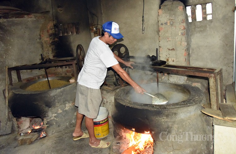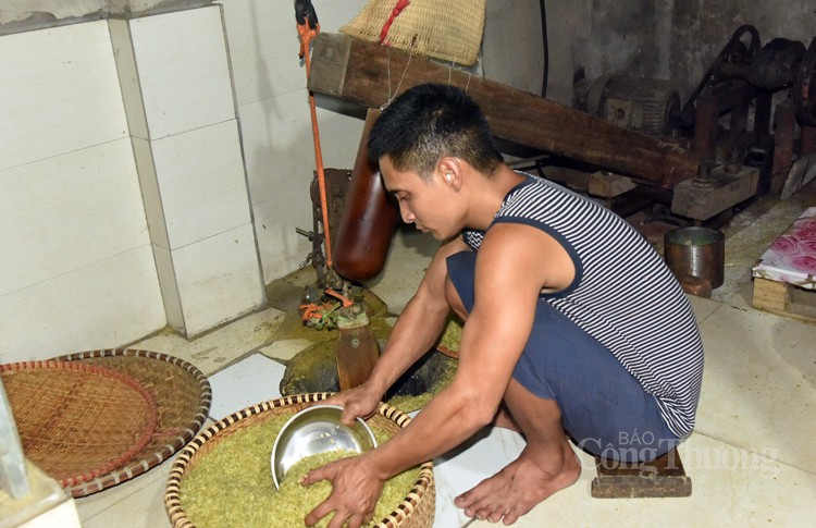 | Các hộ trong làng cốm Mễ Trì đã áp dụng máy móc, cơ giới hóa vào các khâu làm cốm |