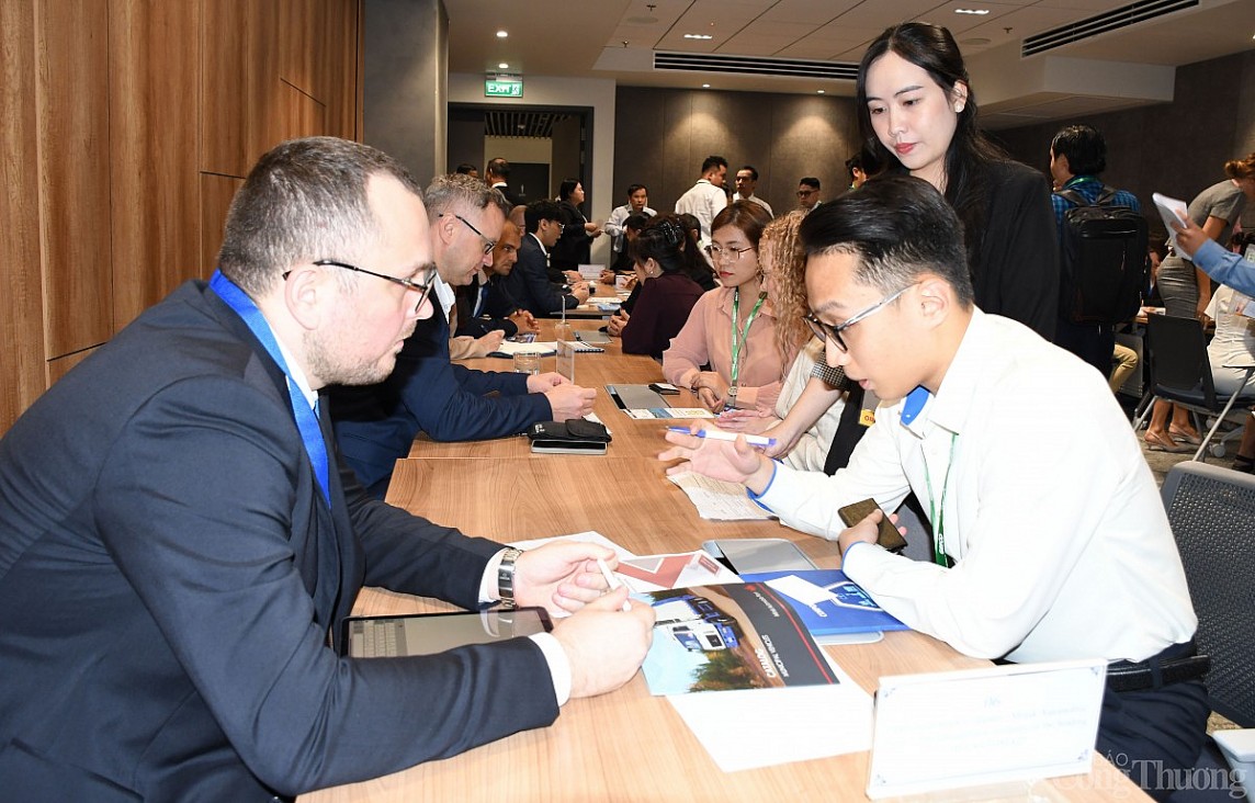 | tại diễn đàn, hơn 60 doanh nghiệp Việt Nam - Belarus đã trực tiếp kết nối, trao đổi thông tin nhằm tìm kiếm các cơ hội hợp tác trong trong gian tới. Ảnh: Thanh Minh. |