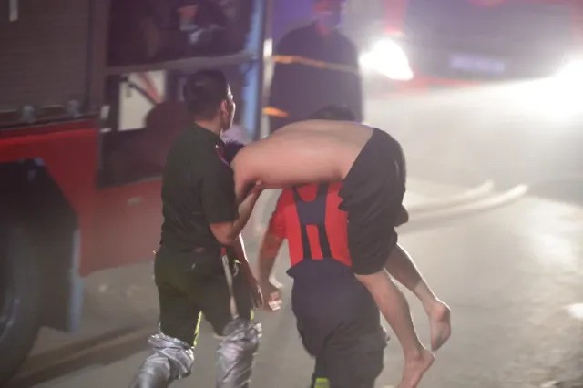 Người bị thương được đưa ra khỏi đám cháy. (Ảnh: vtv.vn) |