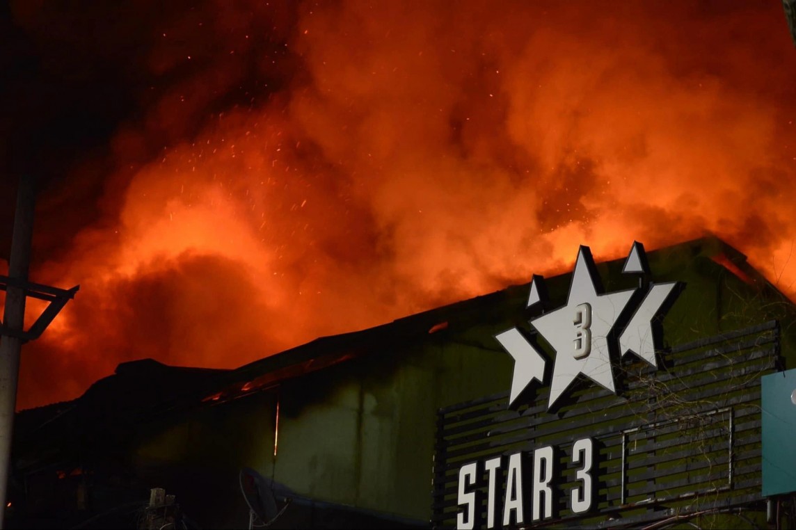 Lửa bốc lên dữ dội tại quán Star 3 club tối 16/8. (Nguồn ảnh: Hoàng Huy) |