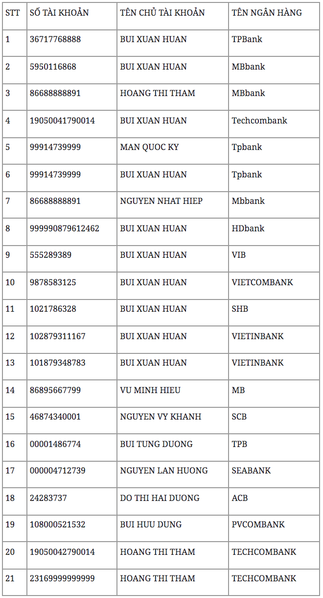 Để phục vụ việc điều tra mở rộng, Công an TP. Hà Nội sau đó cũng phát đi thông tin thông báo phương thức của các đối tượng trong vụ án, đồng thời cung cấp 21 số tài khoản mà các đối tượng sử dụng để nhận tiền lừa đảo, đề nghị các cá nhân bị lừa đảo đến trình báo.