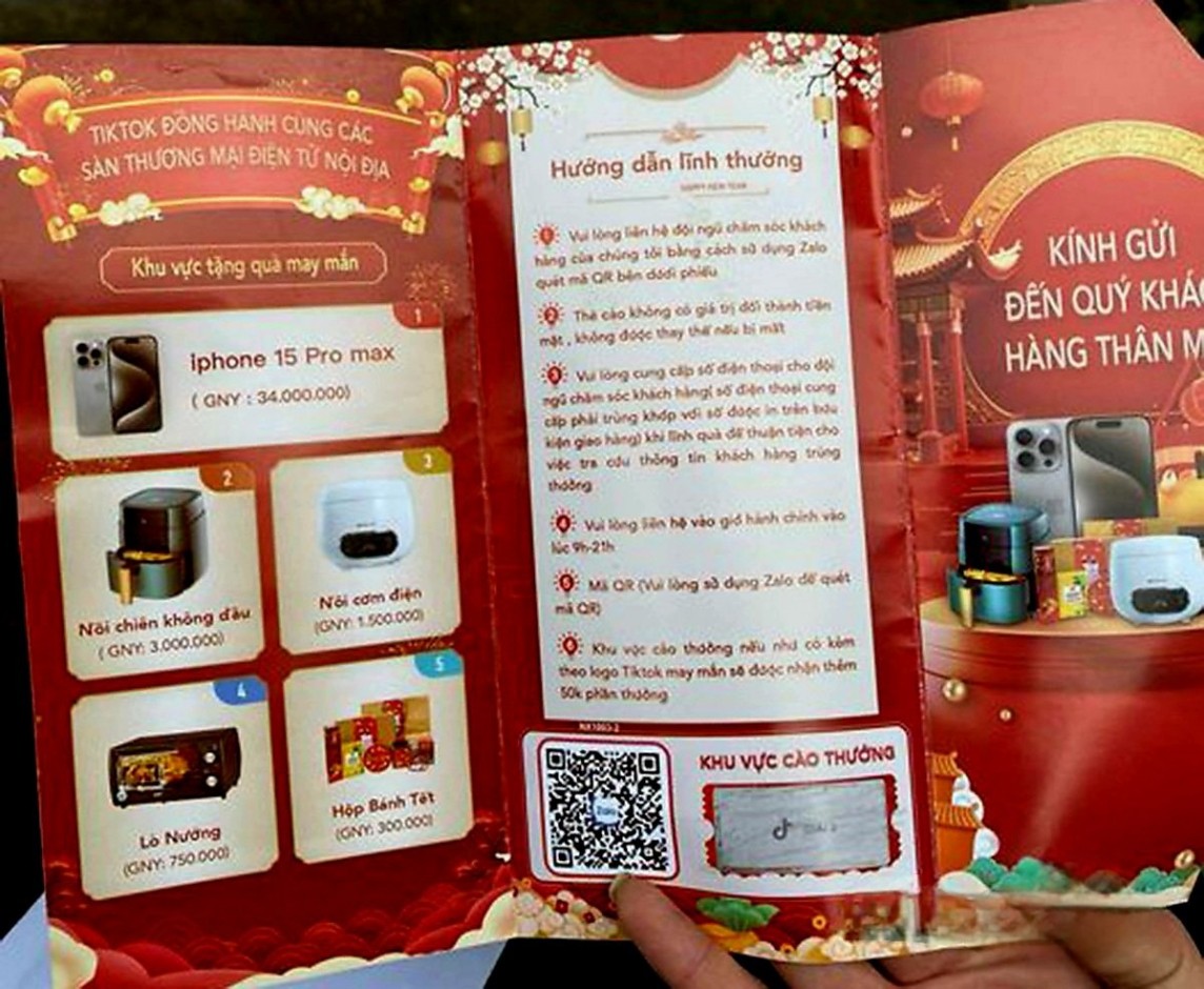 | Nhiều người dân ở Hòa Bình nhận được phiếu cào trúng thưởng có nhiều nguy cơ lộ lọt thông tin cá nhân khi quét mã QR |