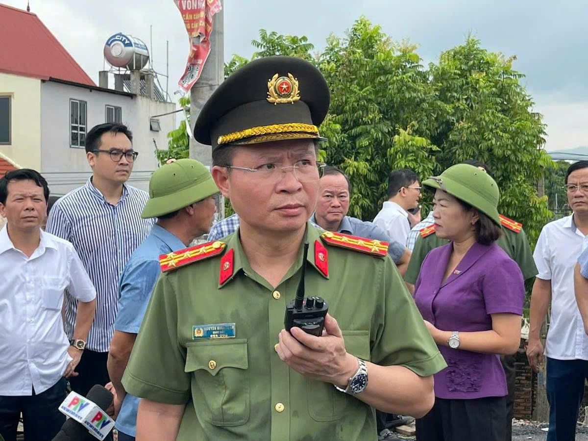 | Đại tá Nguyễn Minh Tuấn, Giám đốc Công an tỉnh Phú Thọ và các lực lượng chức năng trực tiếp thực hiện nhiệm vụ tại hiện trường (Ảnh: Công an tỉnh Phú Thọ) |