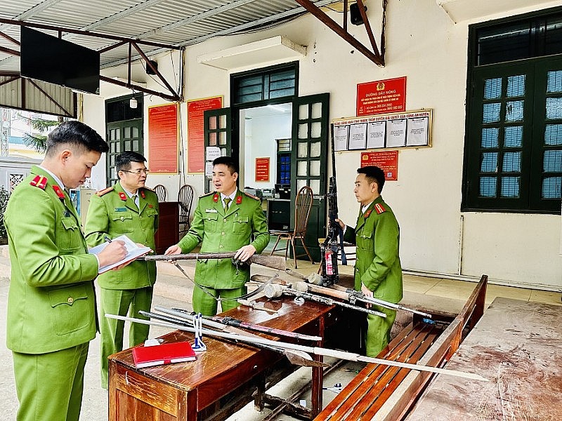 | Công an huyện Cẩm Thủy, tỉnh Thanh Hóa vận động nhân dan giao nộp vũ khí, vật liệu nổ và công cụ hõ trợ. |