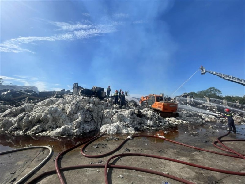 Tại hiện trường, do chất cháy là sợi bông nên ngọn lửa bốc cháy dữ dội, nhiệt lượng tỏa ra rất lớn, lực lượng Cảnh sát Phòng cháy chữa cháy và Cứu nạn cứu hộ đã triển khai nhiều biện pháp nghiệp vụ để ngăn không cho đám cháy lan rộng ra các khu vực xung quanh. Đến khoảng 1 giờ 30 ngày 23/12/2023, đám cháy đã cơ bản được khống chế.
