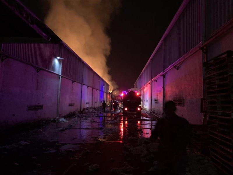Do là vật liệu dễ cháy nên chỉ ít phút sau đó, lửa bao trùm một khu vực nhà kho của công ty.