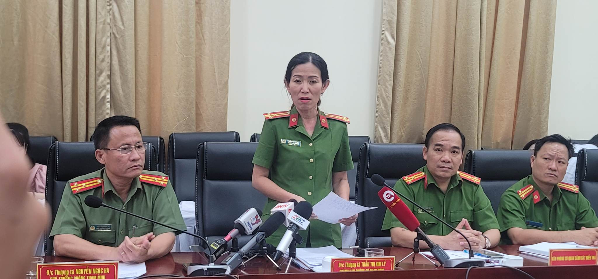 Thượng tá Trần Kim Lý - Chánh văn phòng cơ quan Cảnh át điều tra (PC01) - Công an TP. Hồ Chí Minh thông tin tại họp báo