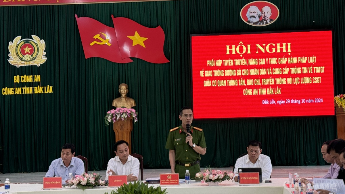 Chiều ngày 29/10, Công an tỉnh Đắk Lắk đã đề nghị phối hợp tuyên truyền, nâng cao ý thức chấp hành pháp luật về giao thông đường bộ cho nhân dân và cung cấp thông tin về trật tự an toàn giao thông giữa cơ quan thông tấn, báo chí, truyền thông với lực lượng Cảnh sát giao thông trên địa bàn tỉnh.