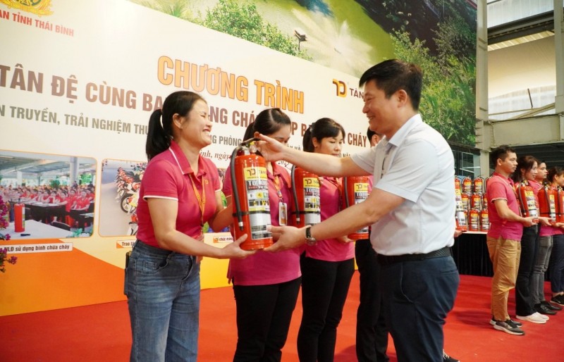 Với quan điểm mỗi người lao động là một chiến sĩ trong việc đấu tranh và phòng ngừa với “giặc lửa”, Công ty Cổ phần Sản xuất hàng thể thao chi nhánh Thái Bình (Công ty Tân Đệ) vừa tặng gần 17.000 bình chữa cháy và hướng dẫn kỹ năng phòng cháy, chữa cháy, thoát hiểm cho tất cả người lao động góp phần quan trọng bảo đảm an toàn cho doanh nghiệp và bảo vệ cho chính người lao động cùng người thân của họ ngay tại gia đình.