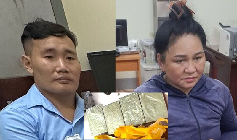 | Đối tượng Trần Văn Cường và Tòng Thị Hịa cùng tang vật (Ảnh: Công an tỉnh Vĩnh Phúc) |