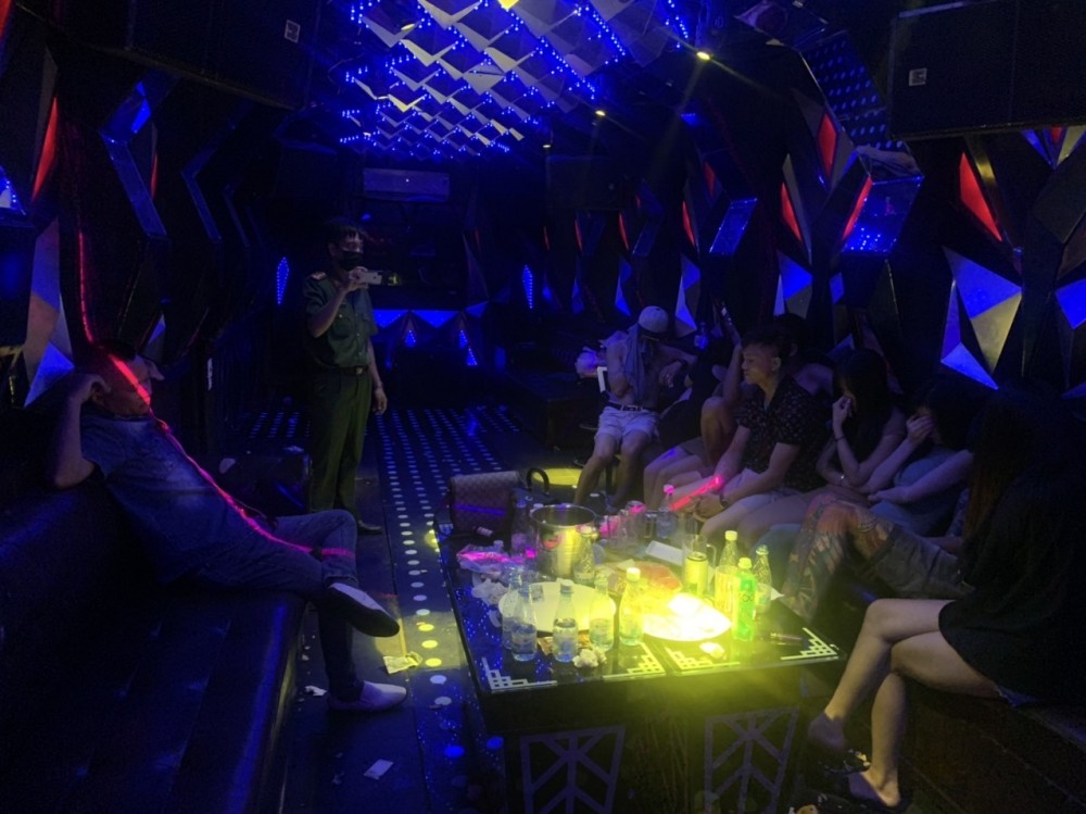 Sau đó, khoảng 2h40 phút ngày 5/6, Phòng cảnh sát QLHC về TTXH Công an tỉnh Vĩnh Phúc chủ trì phối hợp với Công an huyện Vĩnh Tường, kiểm tra hành chính cơ sở kinh doanh karaoke Thiên Hà ở Khu đô thị Phúc Sơn, xã Thượng Trưng, Vĩnh Tường, Vĩnh Phúc.