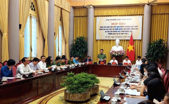 Tại cuộc họp báo, Phó Chủ nhiệm Văn phòng Chủ tịch nước Phạm Thanh Hà đã công bố Lệnh của Chủ tịch nước công bố 5 luật được Quốc hội thông qua tại Kỳ họp thứ 3 vừa qua là: Luật Cảnh sát cơ động; Luật Thi đua, khen thưởng; Luật Điện ảnh; Luật Kinh doanh bảo hiểm; Luật sửa đổi, bổ sung một số điều của Luật Sở hữu trí tuệ.