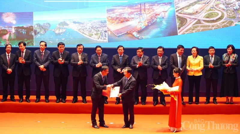 | Ông Cao Tường Huy, Quyền Chủ tịch UBND tỉnh Quảng Ninh trao Giấy chứng nhận đăng ký đầu tư của tỉnh Quảng Ninh cho các nhà đầu tư |