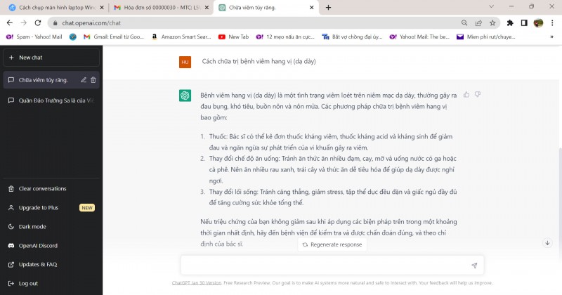 Một trong những kết quả ChatGPT về cách chữa trị bệnh dạ dày