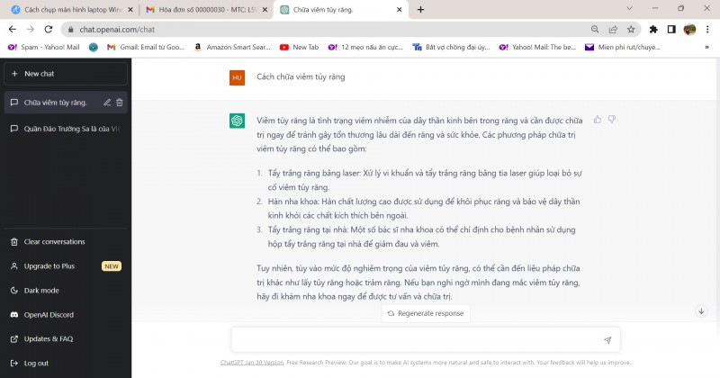 Cách chữa bệnh viêm tủy răng mà ChatGPT hướng dẫn