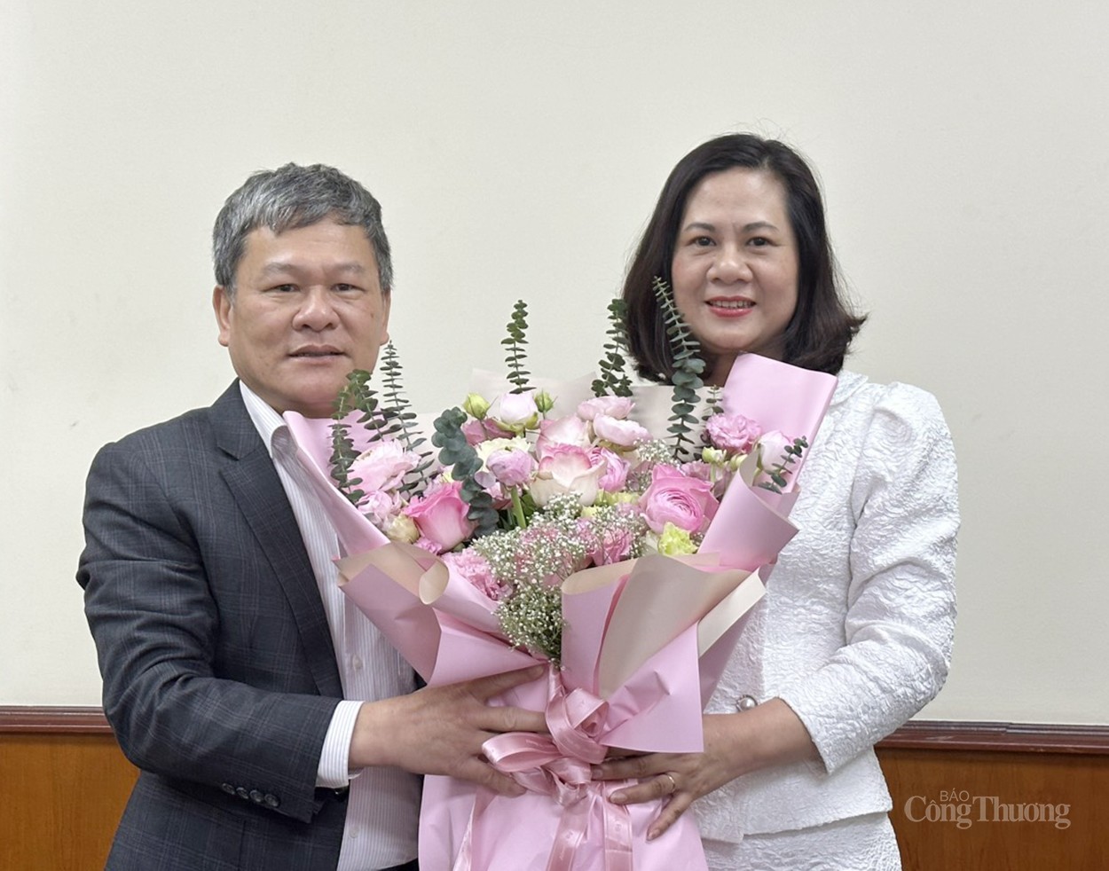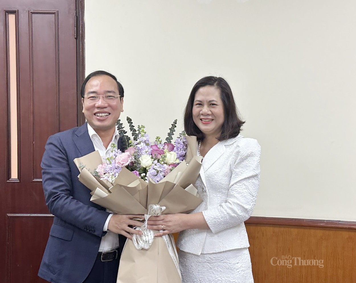 | Chủ tịch Công đoàn Công Thương Việt Nam Trần Quang Huy chúc mừng bà Nguyễn Minh Huệ được bổ nhiệm giữ chức Chủ tịch Công đoàn Bộ Công Thương |