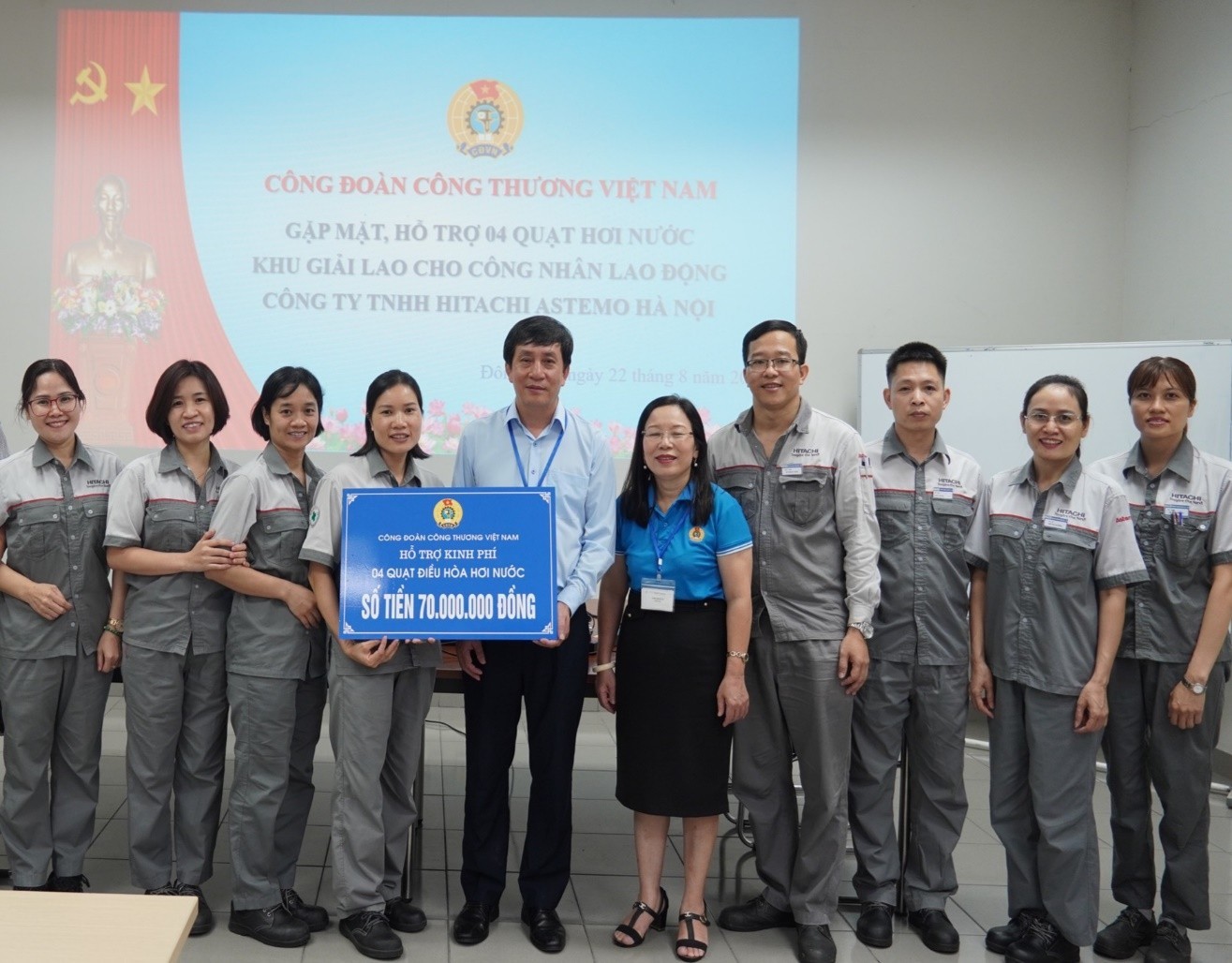 | Ông Phan Văn Bản - Chủ tịch Công đoàn Công Thương Việt Nam - cùng đoàn công tác thăm và động viên người lao động Công ty TNHH Hitachi Astemo Hà Nội |