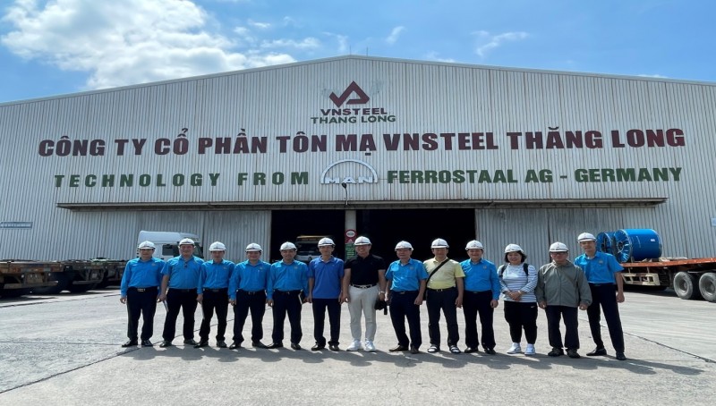 | Công đoàn Kim khí Hàn Quốc thăm, tìm hiểu Công ty CP Tôn mạ VNSTEEL Thăng Long |